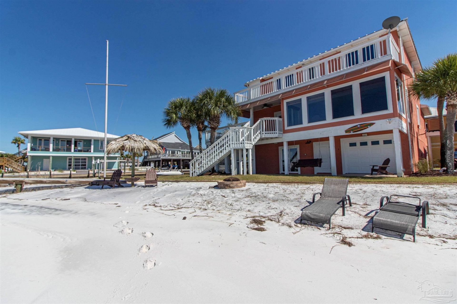 BEST BEACHHOUSE EVER!! Sunset paradise. Don't miss the opportunity to own one of the most unique spots on the Gulf Coast. Sound front and canal front on Navarre Beach. 2 docks, white, sandy beach with swimming area. WaveRunner lift and 13,000 pound boat lift that will accomodate uo to 33 foot vessel. Gorgeous sunsets year round. 6 bedroom, 3.5 baths, remodeled about 5 years ago. Elevator makes entry and exit very easy. Hot tub on deck conveys as well as furnishings down to the silverware. Plank like tile flooring in main living area, 2 dishwashers in kitchen, new cabinets and granite tops in kitchen about 5 years ago. NEW A/C April 8, 20...read more