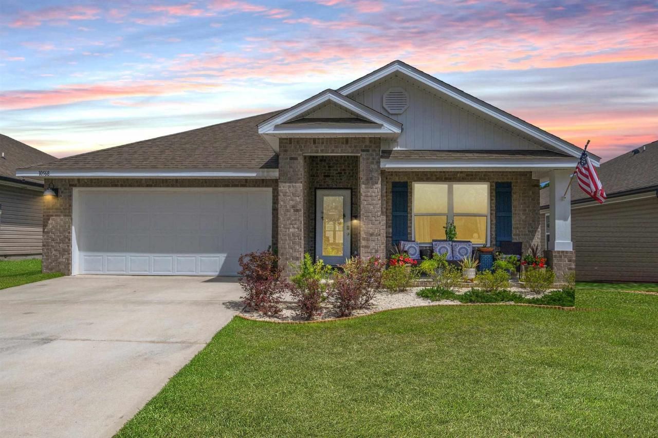 This home is in a small subdivision just minutes away from Corry, NAS, VA Hospital, the Military Hospital, and Perdido. This home is the most popular Cali floor plan. This home has all the wonderful and personal touches. The floor plan has 2 bedrooms and 1 full bathroom located off one side of the massive foyer. Further down the foyer hallway is another full bedroom, laundry room, garage entry door. The kitchen, dining room, and family room are a huge open floor plan with the master suite located off the back of the home. This floor plan is wonderful for privacy and a spread out feel. Home was well taken care of and just shy of 3 years...read more
