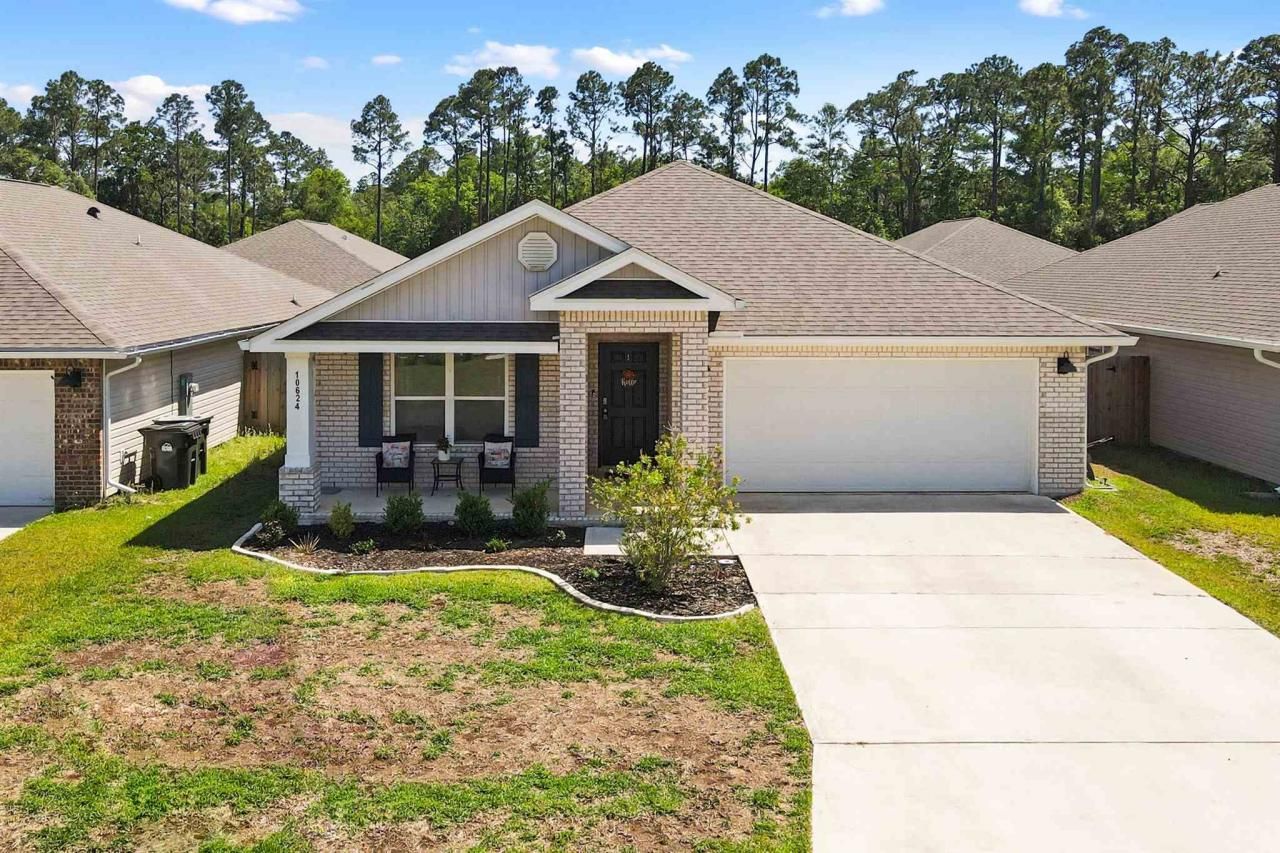 Queens Gate The highly sought after subdivision because of its incredible location. 6/7 minutes to Corry Station, 10 minutes to NAS Pensacola, and 10 minutes to Perdido. The home is the fabulous Cali floor plan. This floor plan is the most popular because it has 4 bedrooms and 2 full bathrooms in an impressive open floor plan. Home has a wide and long foyer that puts 2 bedrooms and 1 full bath on one side and on the other is another bedroom, laundry room, and garage door. The kitchen is very open and has an extra large eat up kitchen island, stainless steel appliances, and walk in pantry. Master suite is located off of the back of the...read more